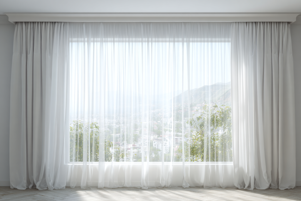 A cortina de voal é uma das melhores escolhas para instalação sem furar. Ela é leve, elegante e deixa a luz entrar de forma suave.