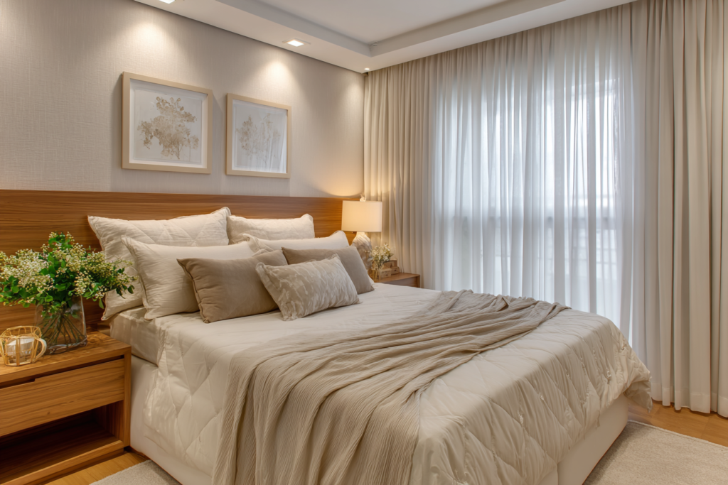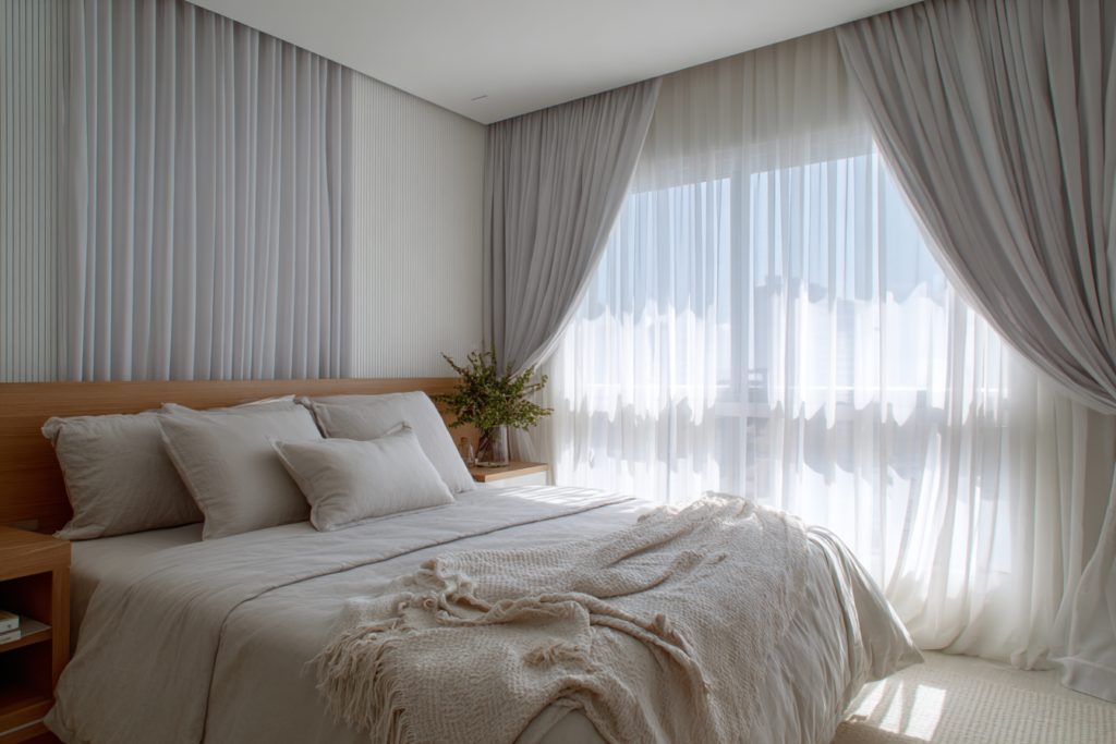 - Cor: A cor das cortinas pode afetar tanto o ambiente quanto o esforço de manutenção. Cores mais escuras tendem a acumular menos sujeira.