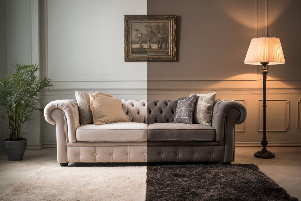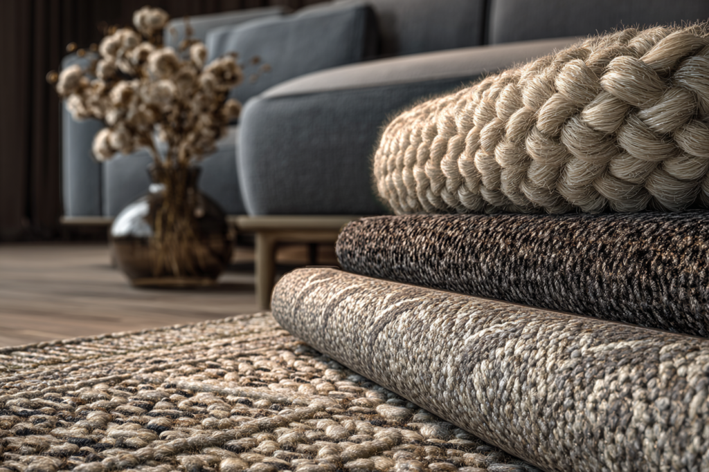 Falar de qual cor de tapete combina com sofá cinza sem considerar textura e material seria incompleto. A mesma cor pode parecer completamente diferente dependendo da superfície.